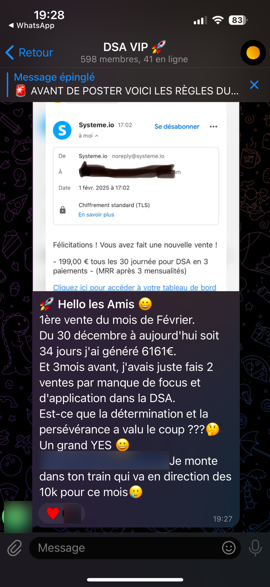 Tout ça à travers des lives sur Zoom / Des coachings one to one sur Télégram ou WhatsApp / La partie MP sur Skool et naturellement la communauté DSA.