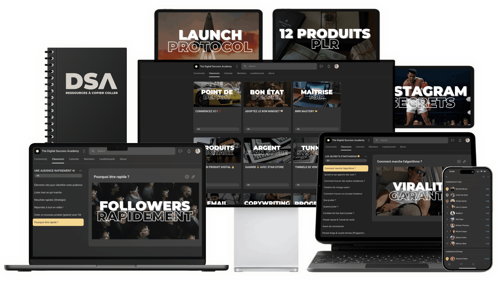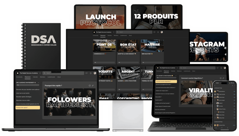 Avec des conseils étape par étape et des études de cas réels, The Digital Success Academy (DSA) est un programme puissant pour créer une entreprise en ligne prospère.